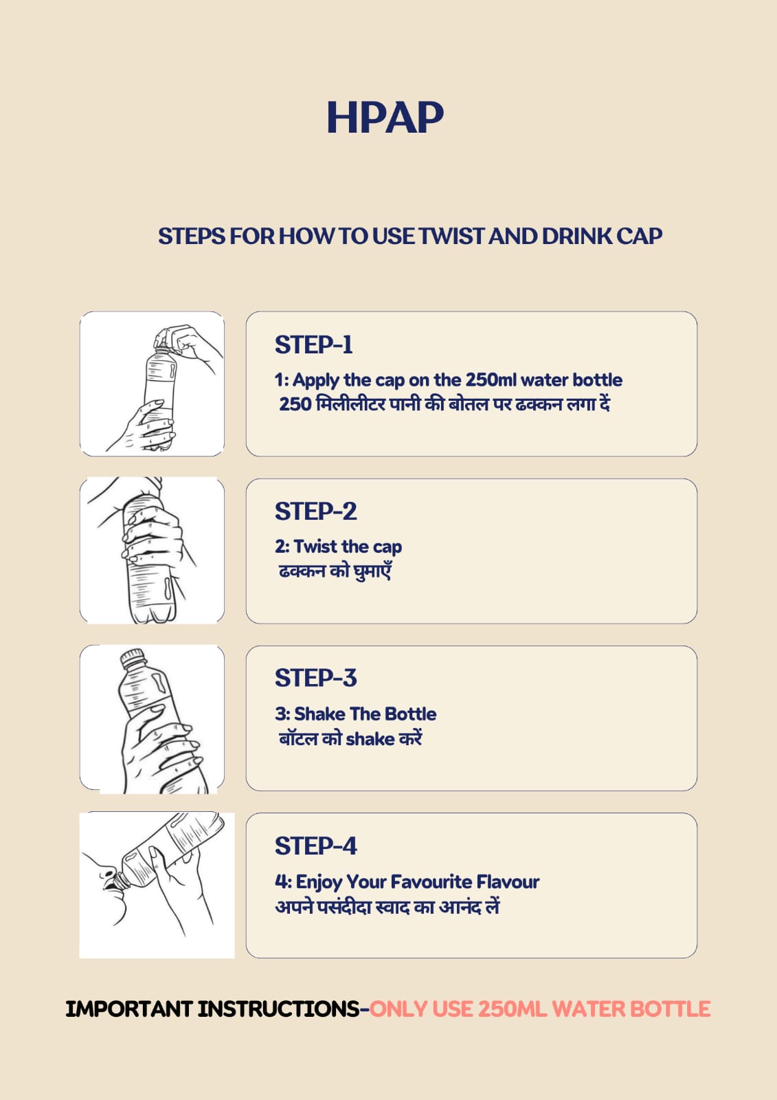 Just twist the cap, let the flavour drop in, shake your bottle, and enjoy instantly.